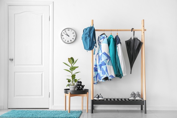 玄関先に置くのはインテリアにもなるコートハンガーがおすすめです。見た目がすっきりとしていてシンプルな商品を選ぶと使いやすく、どんなタイプの部屋とも相性抜群。