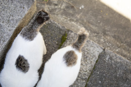 猫の模様は十猫十色。路地で出会った良く似た二匹は尻尾の形も背中のまんまる模様もほぼ同じというペアルック状態。でも背中の模...